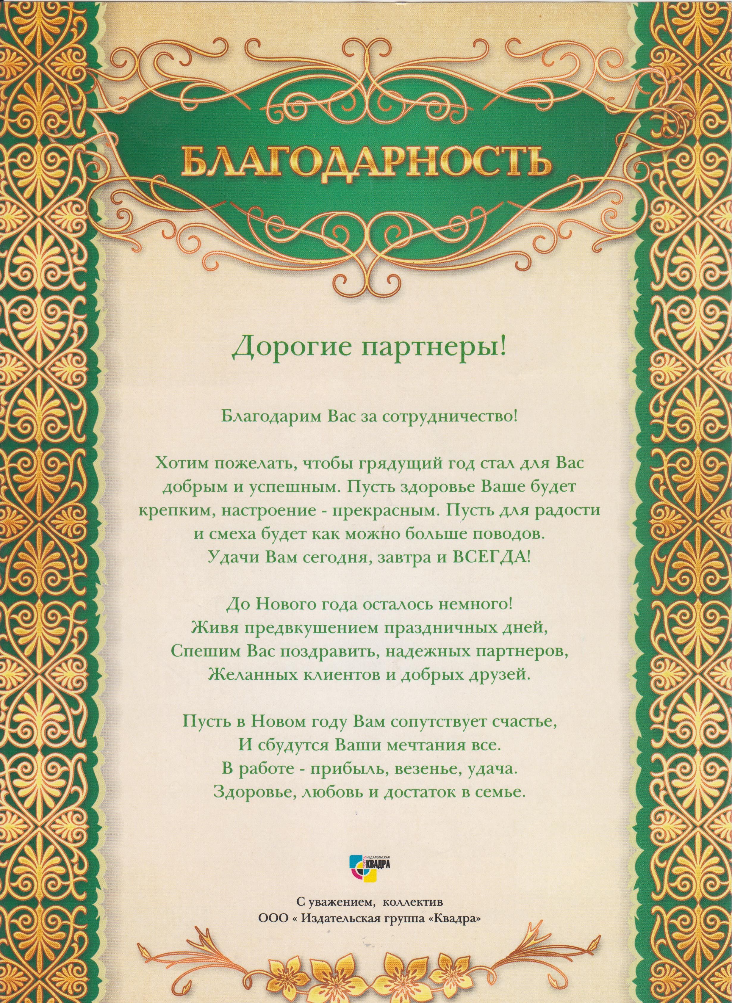 Благодарность за сотрудничество от ООО «‎Квадра-принт» 1.2 мб