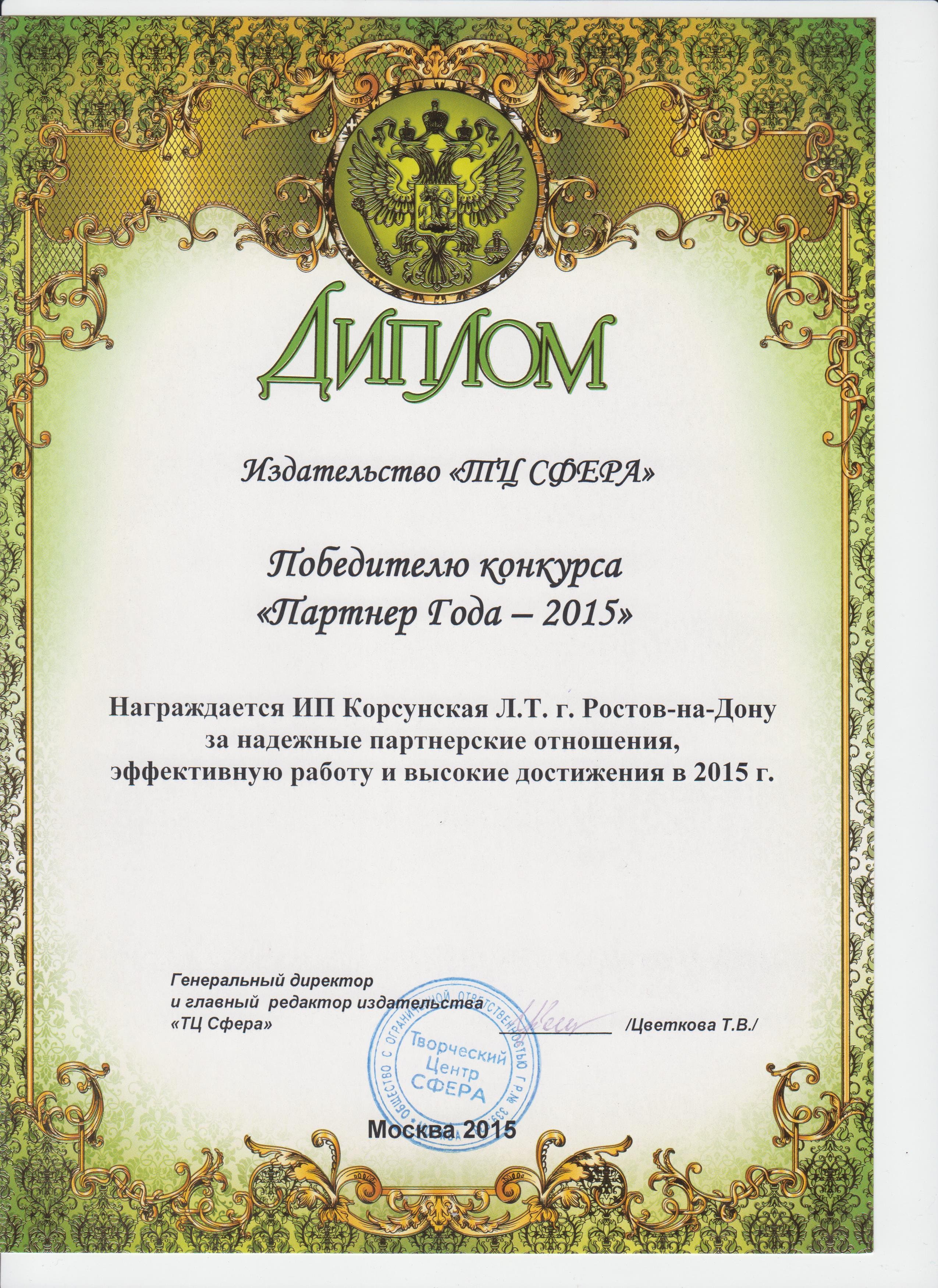 Партнер года 2015 ТЦ Сфера 4 кб